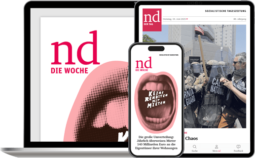 Mit der nd.App können Sie alle Artikel von »nd.DerTag« und »nd.DieWoche« an einem Ort lesen. Genießen Sie schnellen Zugriff auf alle Ausgaben und greifen Sie jederzeit von zu Hause oder unterwegs bequem auf alle aktuellen News, Hintergründe, Kommentare, Kolumnen und Leserkommentare zu. Einfach mit Ihrem Digital- oder Kombi-Abo anmelden und loslesen.